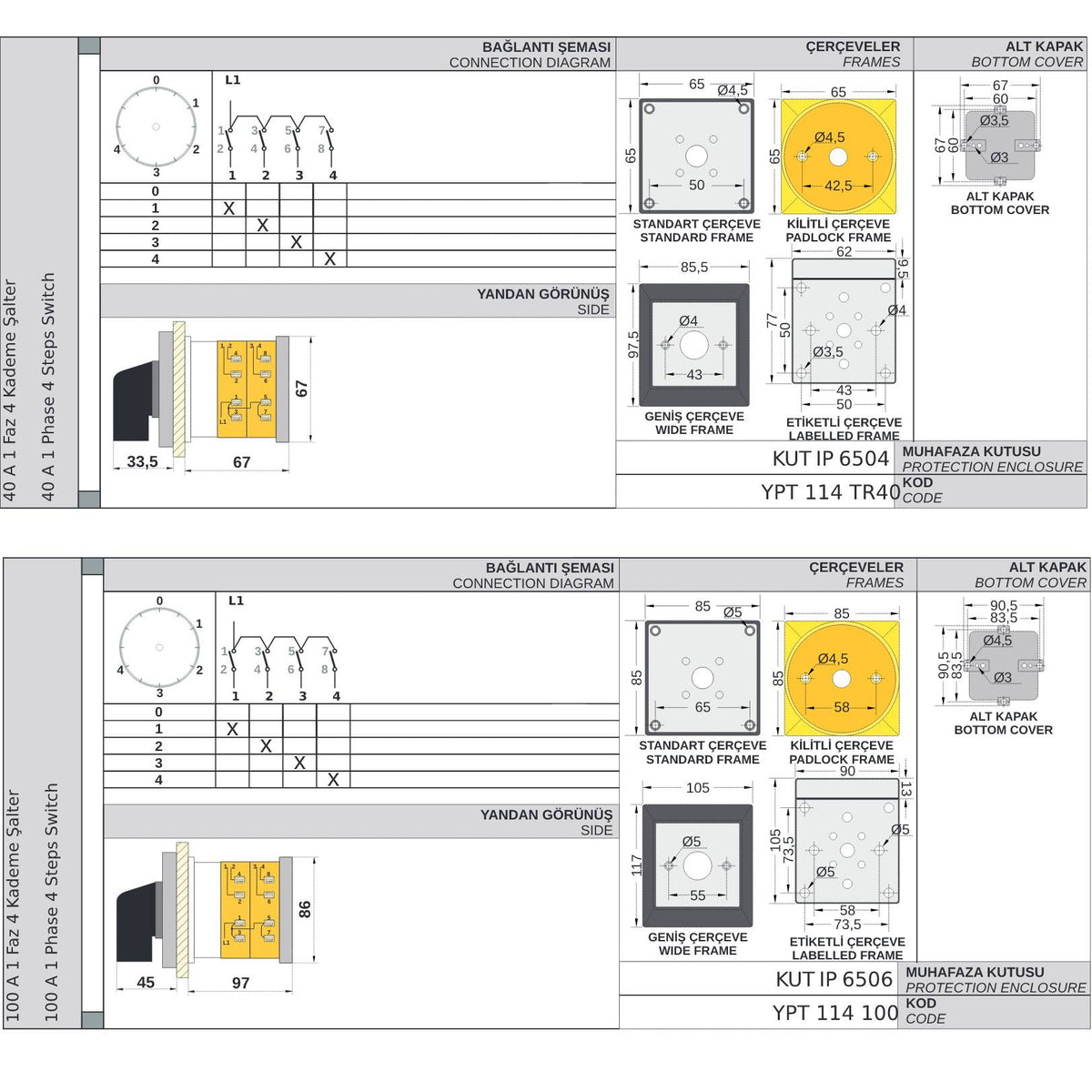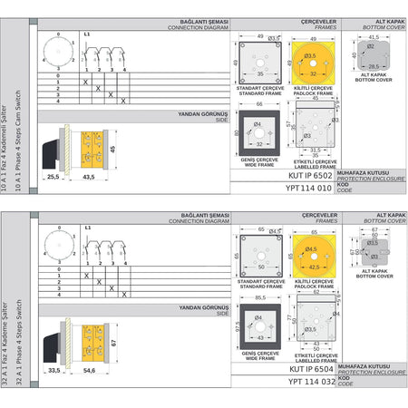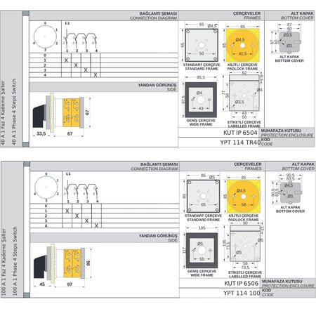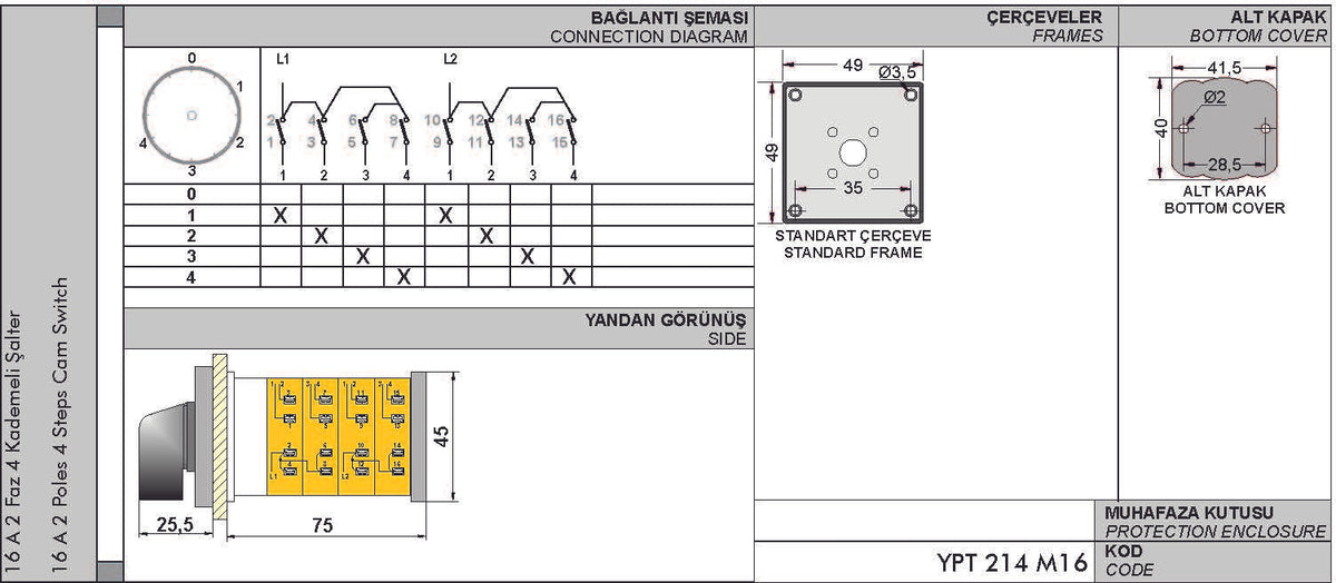 Step switch 0-1-2-3-4, rotary switch, 1-2-pole, 10-160A, YPT114, manufacturer OPAŞ (Turkey)