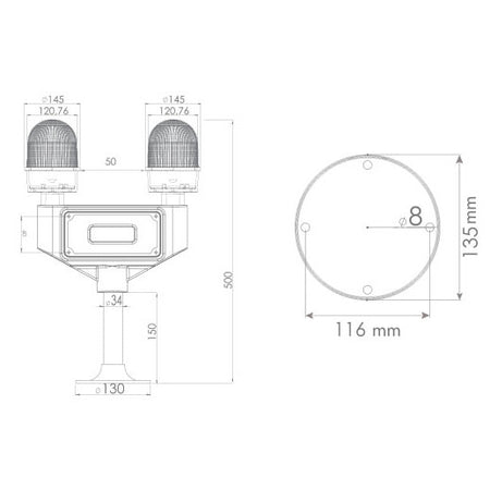 For surface-mounted obstacles of the double light fixture, 85-250 V AC/DC, manufacturer MUCCO (Turkey).