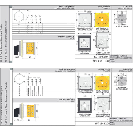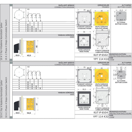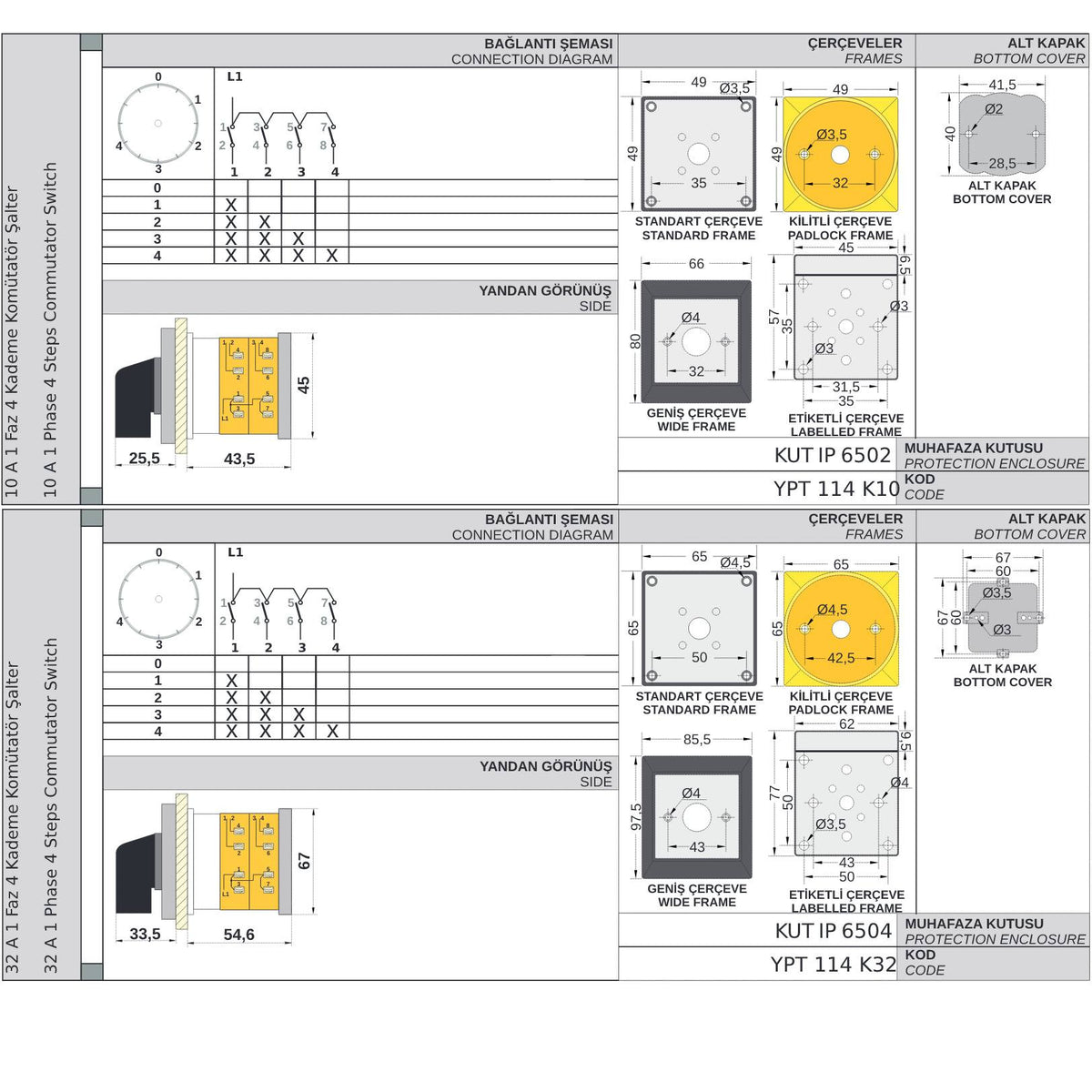 0-1-2-3-4 rotary knob package group step/order switch, YPT114K, manufacturer OPAŞ (Turkey)