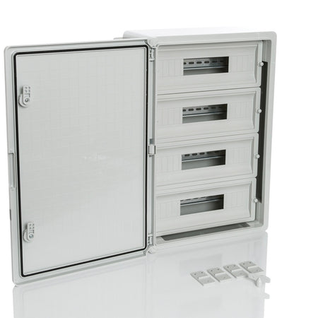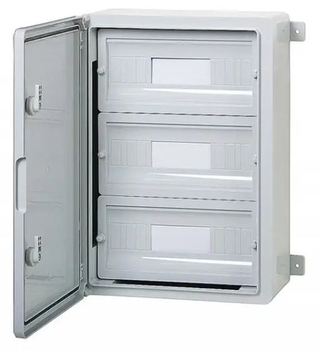 Plastic distribution board for modular devices, gray door, DIN rail frame, IP65, Plastim