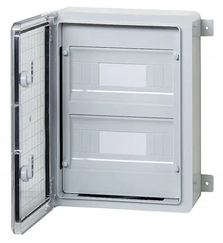 Plastic distribution board for modular devices, transparent door, IP65, Plastim