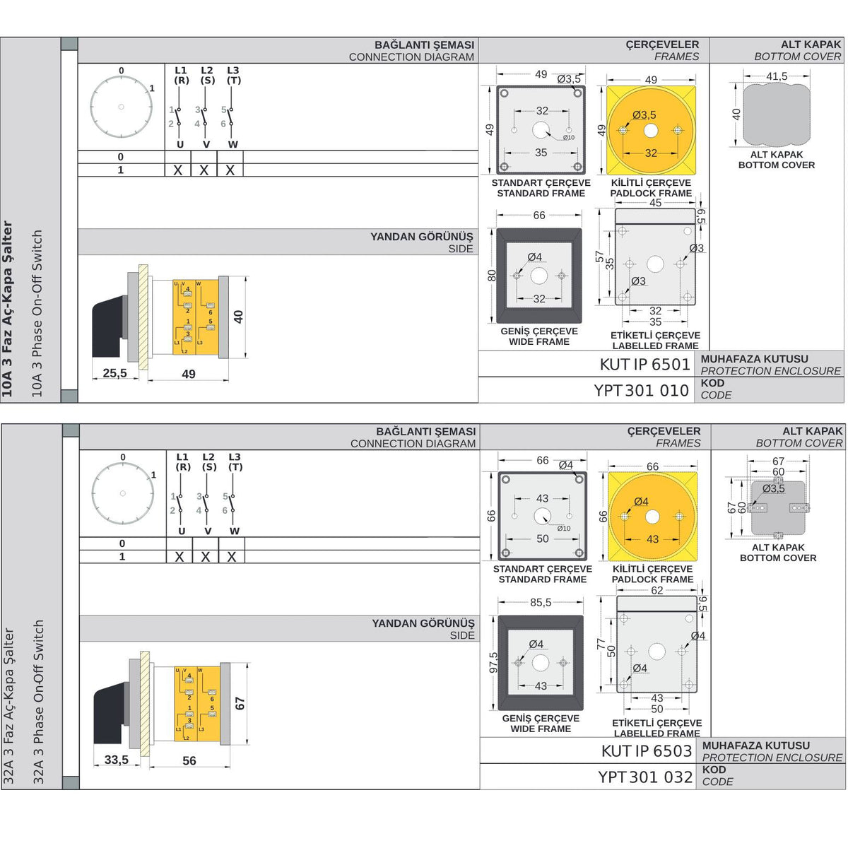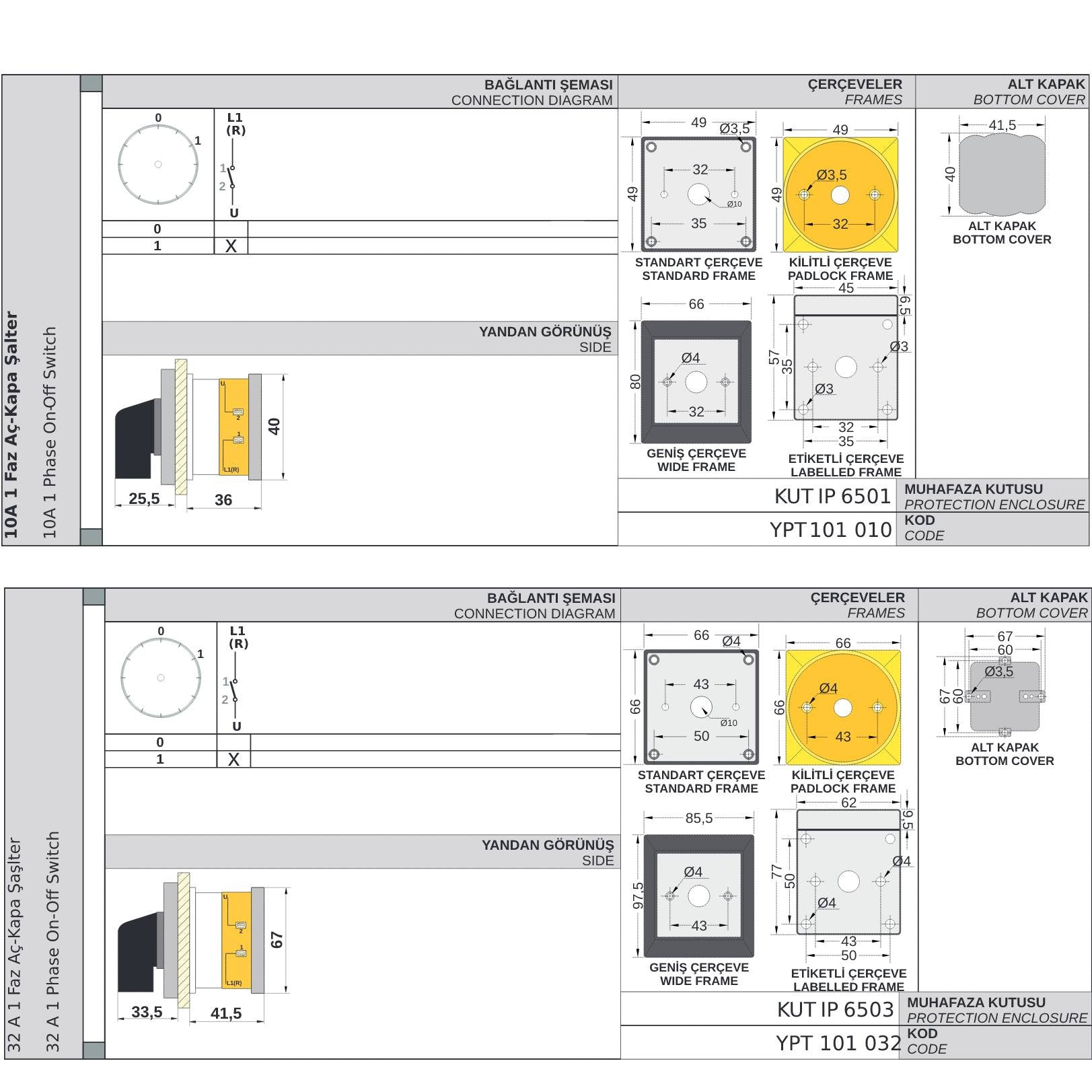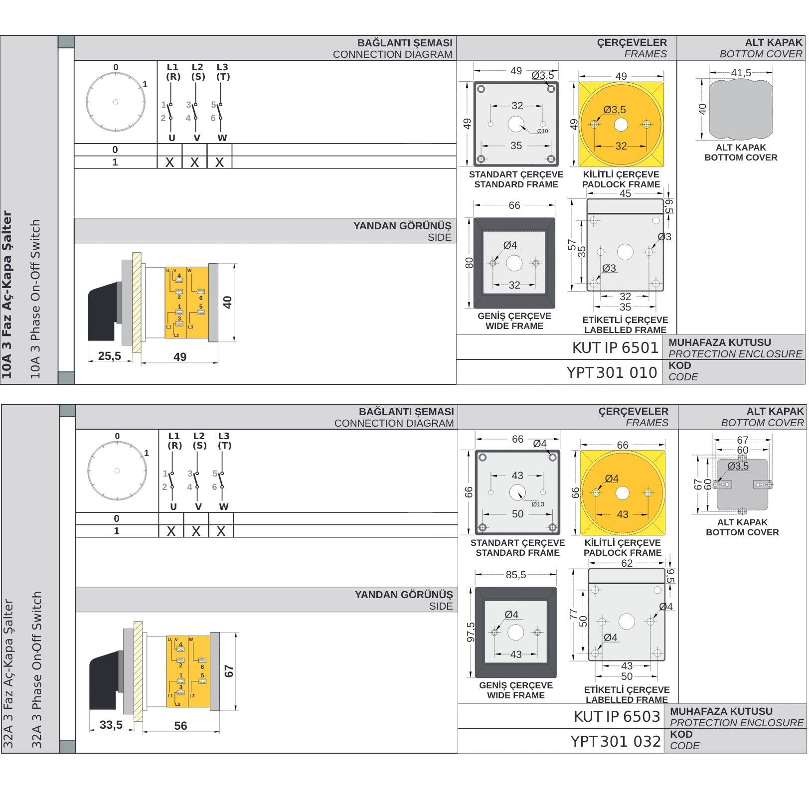 Switch with a locking hook ON-OFF (0-1), 1-2-3-4 poles, manufacturer OPAŞ (Turkey)
