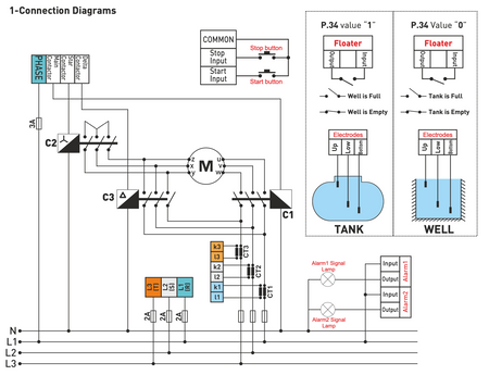 - 1A - 120A (TDK-01) / 2A - 300A (TDK-02) submersible pump.