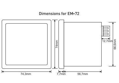 - (EM-06 ja EM-72), kaudne mõõtmine 5/5...9995/5A (EM-06 ja EM-72), 1A - 100A (EM-100D) , 2-250A (EM-250D);