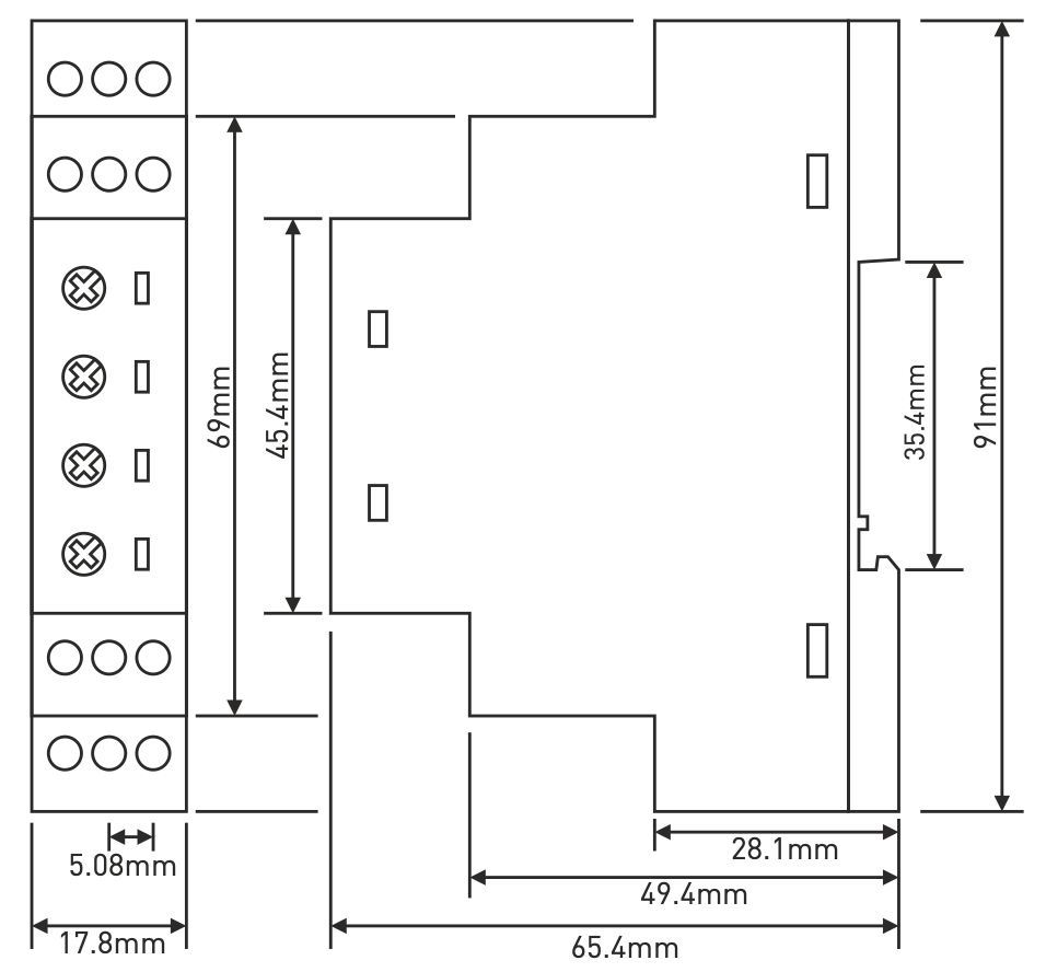 Ajarelee on paigaldatud standardsele 35 mm DIN-riba külge.