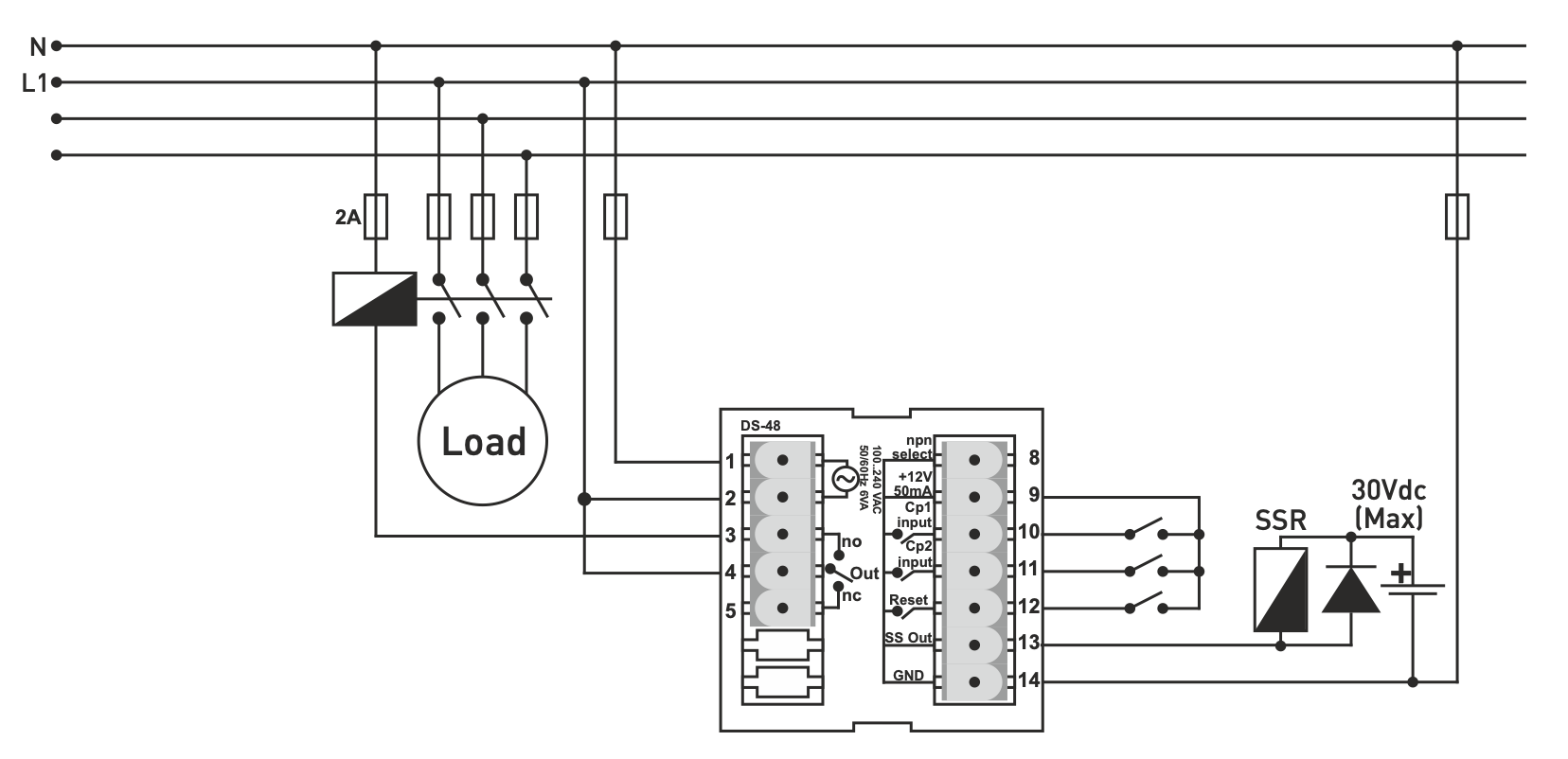 Sisseehitatud andurite toide 12VDC, 50mA(max)