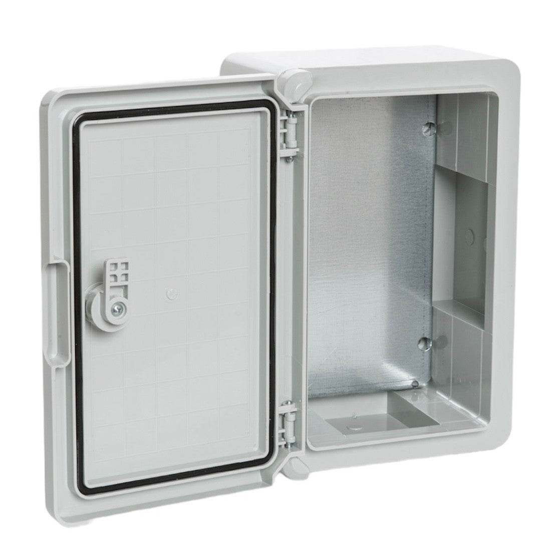 Plastist jaotuskilp, hall uks, koos paigaldusplaadiga, RAL7035, IP65