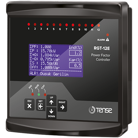 RGT-12E reaktiivvõimsuse regulaator (TENSE ) on täisautomaatne seade kompensatsiooniastmete optimaalseks lülitamiseks.